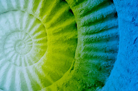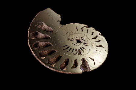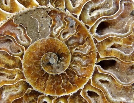 Ammonite is a fossilization of a squid enclosure, photographed with macro lens in studio