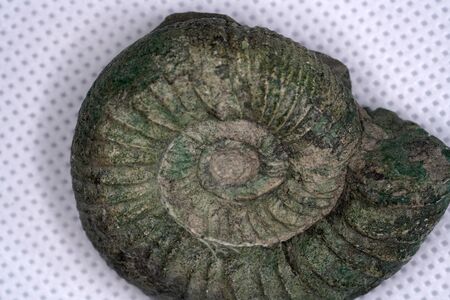 Fossil of ammonite. Macro shot of an ammonite fossil, possessing the typically ribbed spiral-form shell