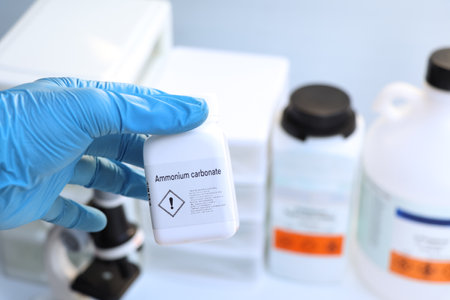 Ammonium carbonate in glass, chemical in the laboratory and industry, Chemicals used in the analysis