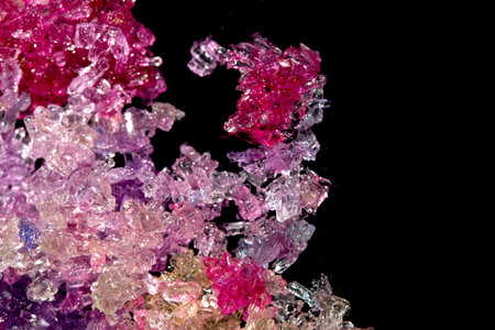 Sugar Crystal Healing Vibrant Glittering Shard Close Up Molecule on Black Background