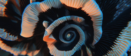Abstract illustration of a beautiful seashell isolated on a black background. Created with generative AI