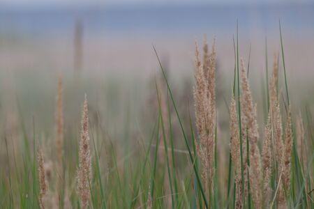 A beautiful grasses growing in dunes at the beach of Baltic Sea. An overcast day in Latvia, Europe.