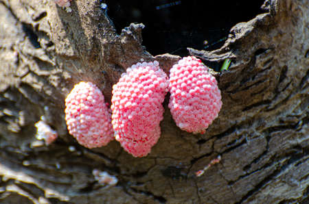 Details of mushroom fruiting body at growth, fungiculture and cultivation of Pleurotus djamor, macro