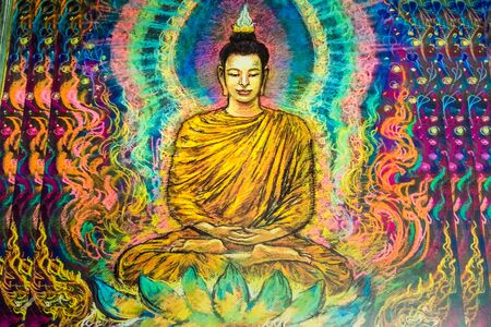 buddha in colorful vintage style illustration. Abstract painting, oil painting