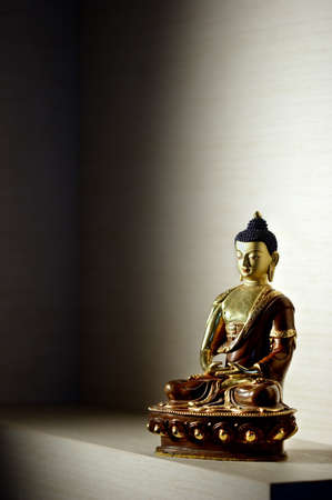 Buddha statue in Buddhist temple, closeup of photo.
