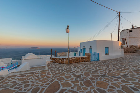 Kamares town with traditional white houses on Sifnos island on sunset. Greece