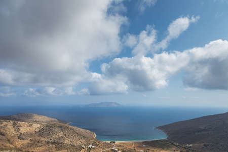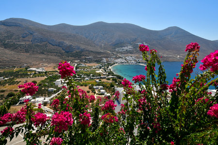 Amorgos, Greece - July 31, 2018: view from a part of Katapola in Amorgos island, Greece