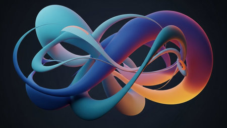A fluid abstract sculpture with intertwined smooth organic shapes in vibrant blue, teal, and orange gradient colors...