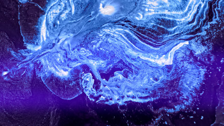 Fluid paint art, marble abstractions in blue, black.