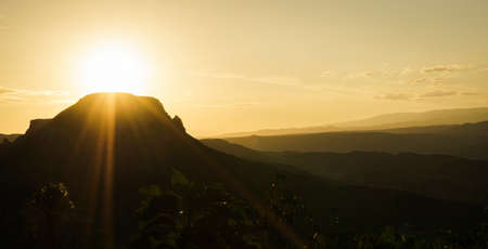 Sunset view behind the silhouettes of some low mountains in the AlmerÃa desert.