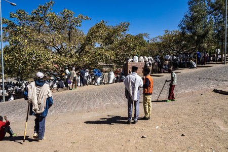Gonder, Ethiopia - January 19, 2012: group of unidentified people dressed in traditional attire during the Timkat holiday, the important Ethiopian Orthodox celebration of Epiphany.