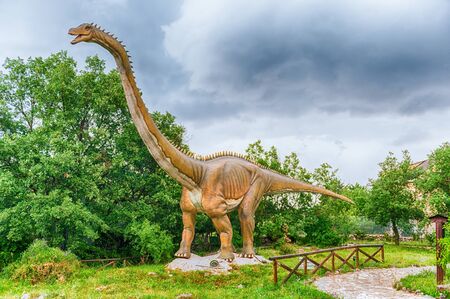 SAN MARCO IN LAMIS, ITALY - JUNE 9: Diplodocus dinosaur, featured in the Dino Park in San Marco in Lamis, small town in southern Italy, June 9, 2018