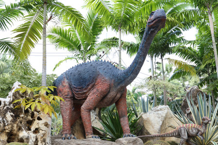 Pattaya,Thailand-September 4,2020:The dinosaurs statue is beautiful in Nong Nooch Tropical Botanical Garden