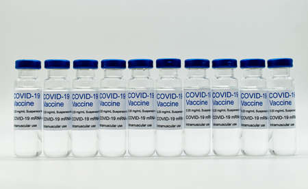 Glass vials with Covid-19 Vaccine isolated on white background.