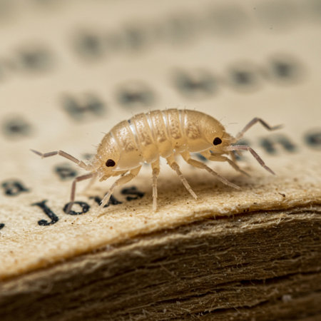 A closeup shot of a paper louse on a book surface