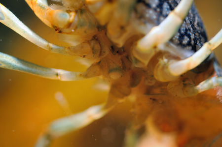Underneath view to crayfish legs under water