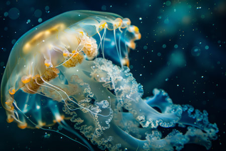 Glowing Jellyfish Floating in Dark Ocean Depths