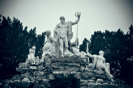 Wien; Austria - Neptune Fountain at Schönbrunn Garden in winter. Details of the statues in black and white
