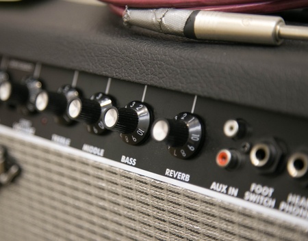 Guitar amplifier, close up view, shallow depth of field
