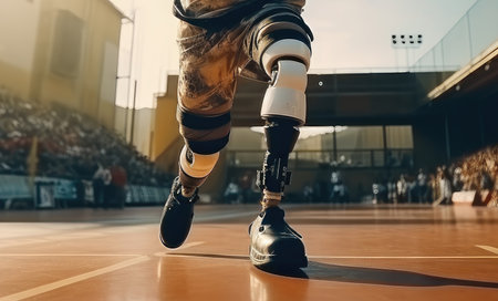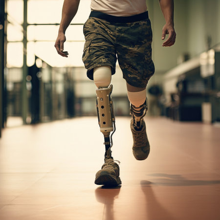 Generative AI, person with disability, prosthetic limb running and does not feel obstacles