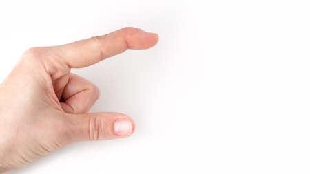 Hand with common long nails on white background