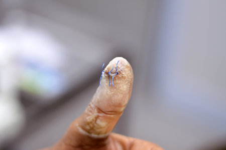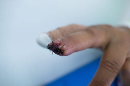 wound sutures in the finger of patients in the hospital.