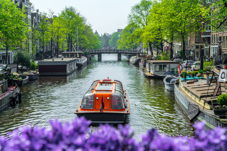 AMSTERDAM, NETHERLANDS - AUGUST 19, 2014: Canals of Amsterdam. Amsterdam is the capital and most populous city of the Netherlands
