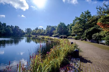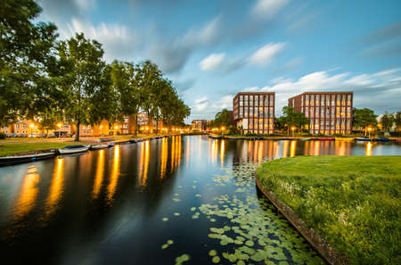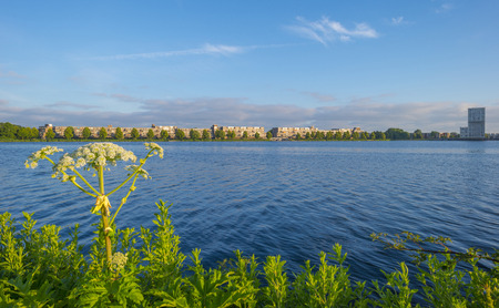 Low view over the water that lies next to the Vroesenpark in Rotterdam, the Netherlands