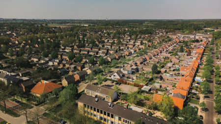 Aerial view of the tiled red roofs of small town Udenhout Netherlands. Travel Europe. An aerial view drone photo.