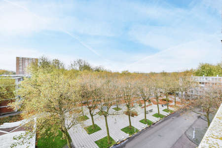 Rotterdam, The Netherlands, September 8, 2018: aerial view of recent housing developments in post-modern style in the neighbourhood of Nieuw Crooswijk