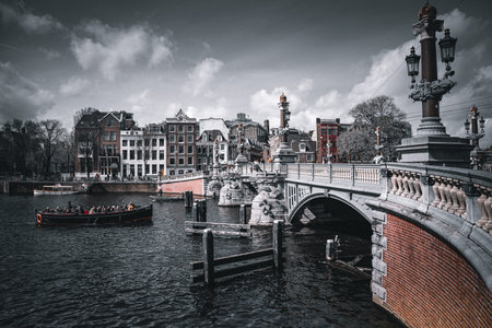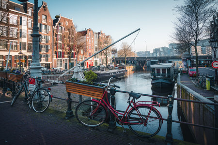 Amsterdam, Netherlands - March, 12, 2017. Scenic canal with traditional dutch architecture in Amsterdam, Netherlands