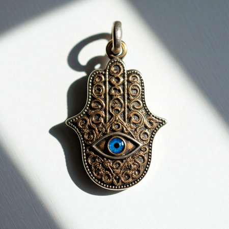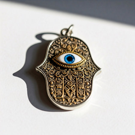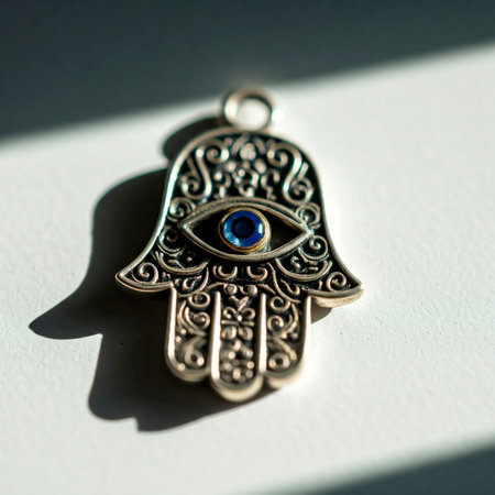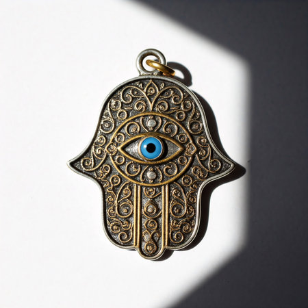 evil eye talisman, with intricate patterns and symbols, bringing protection and good luck, created with generative ai