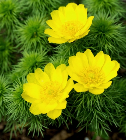 spring pheasant's eye (Adonis vernalis) also known as yellow pheasant's eye and false hellebore.