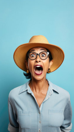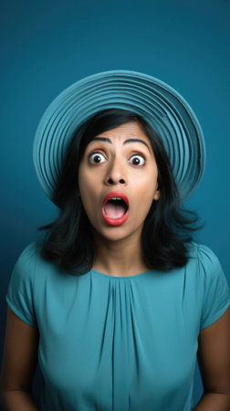 A close-up portrait of a surprised person with wide eyes and an open mouth, capturing genuine astonishment and emotion. The intense expression evokes curiosity and engagement.