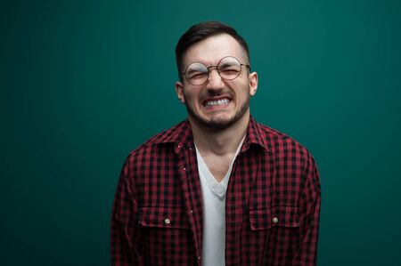 Portrait of a young man writhed in pain