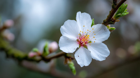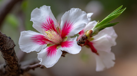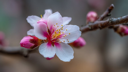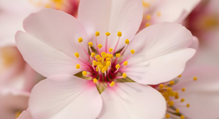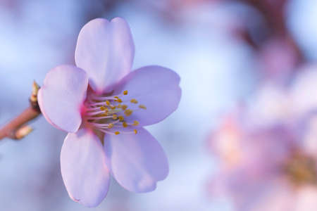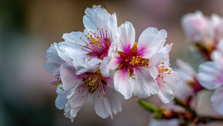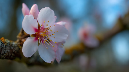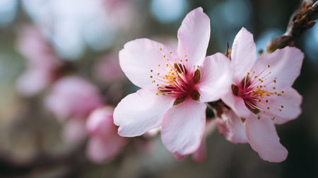 Blossoming Almond Flower: Delicate Petals and Vibrant Stamens in Spring