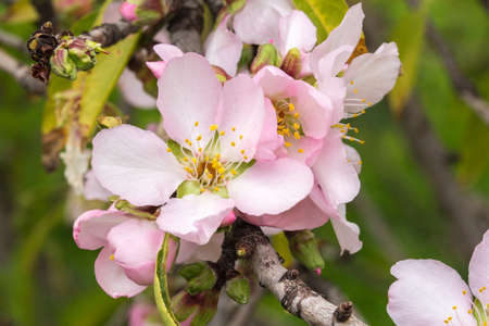 Almond tree in blossom close up