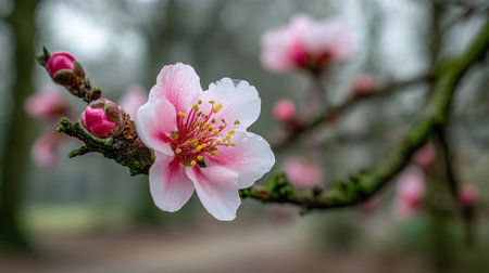Delicate Pink Blossom on Branch, Embracing Spring's Soft Beauty and Potential