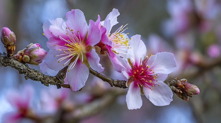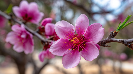 Delicate Almond Blossoms in Full Bloom Displaying Vibrant Spring Colors