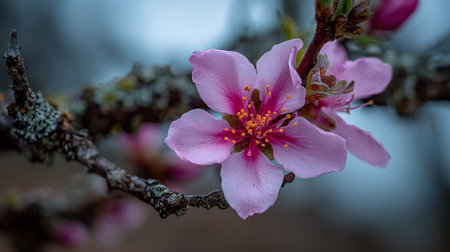 A close-up captures the beauty of a pink almond blossom, highlighting its intricate details and the promise of spring.