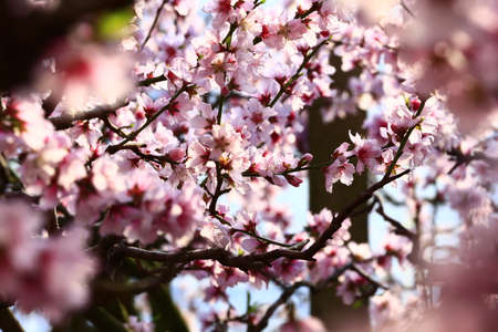Exquisite pink and white almond blossom in early spring