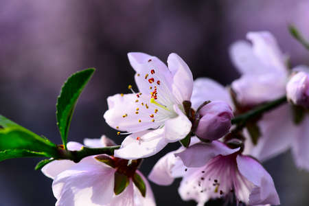 Beautiful and colorful almond flower in full bloom