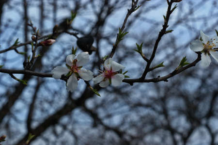 Almond tree blossoms white pink flowers blooming in spring