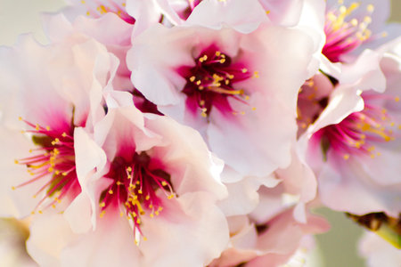 Almond tree blossoms flowers close up