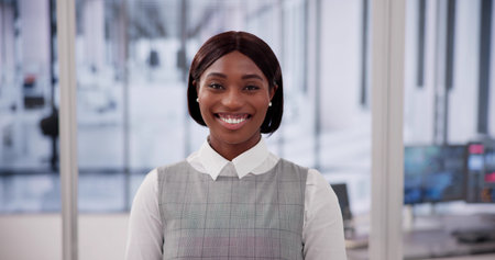 Confident Young Professional Woman Smiling in Modern Office Natural, Bright, Airy Portrait