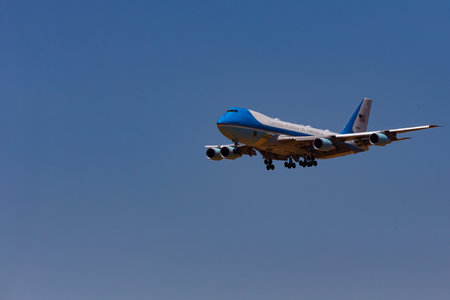 Madrid, Spain- June 28, 2022: Air Force One upon arrival at the Torrejón Air Base in Madrid. United States President Jon Biden arrives on his plane at the NATO summit in Madrid.