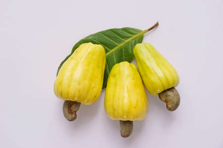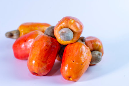 fresh cashew fruit on white background - fruits of the cashew tree