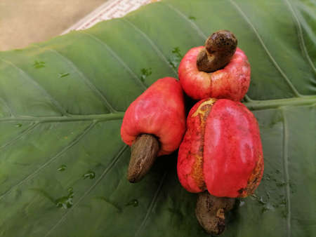 Close up of cashew fruit on the tree. Cashew fruit is a fruit that has a large size.