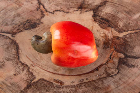 Fresh ripe cashew fruits isolated on wood background