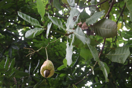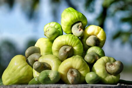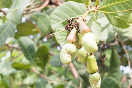 Fresh Cashew nuts are ripe on the tree